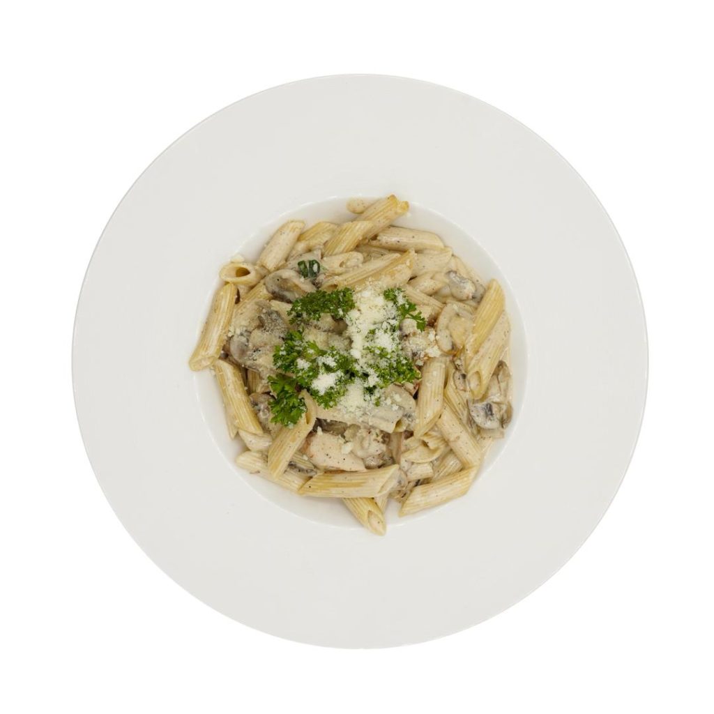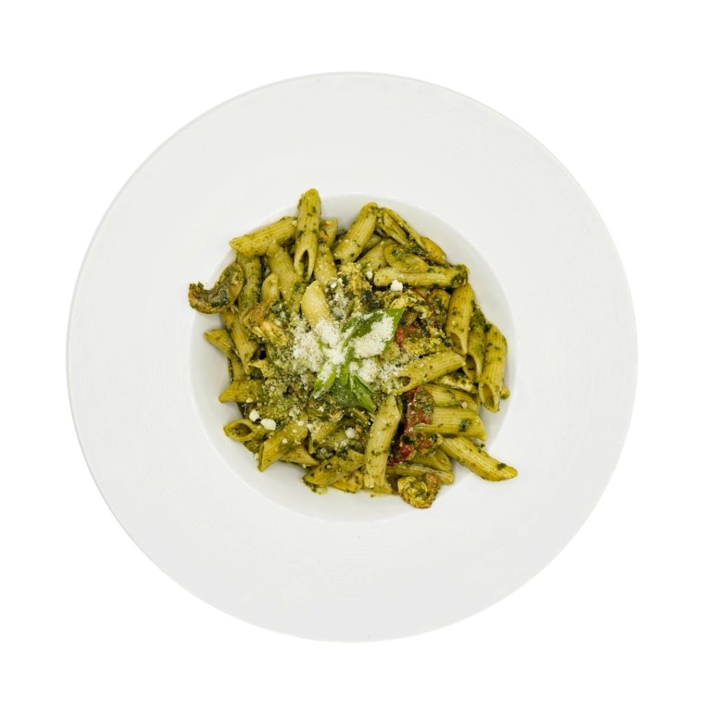 پاستا پنه-سس پستو-قارچ-سینه مرغ گریل شده