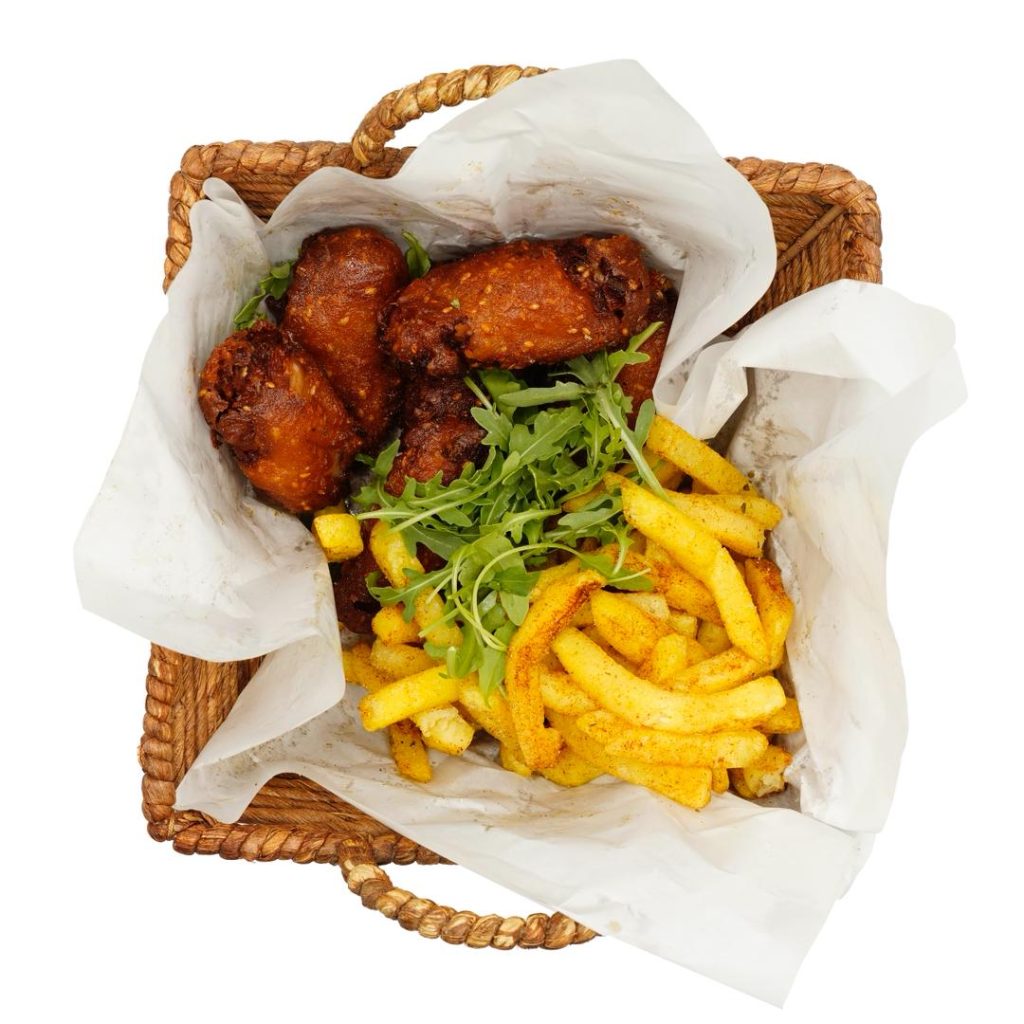 ۶ عدد بال مرغ سوخاری-سس چیلی، نان سیر