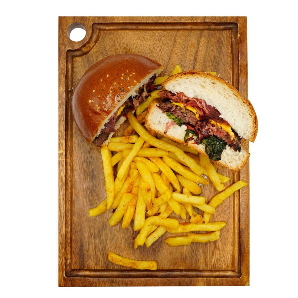 برگر تازه-سس مخصوص-بیکن-پنیر گودا-پیازکاراملایز