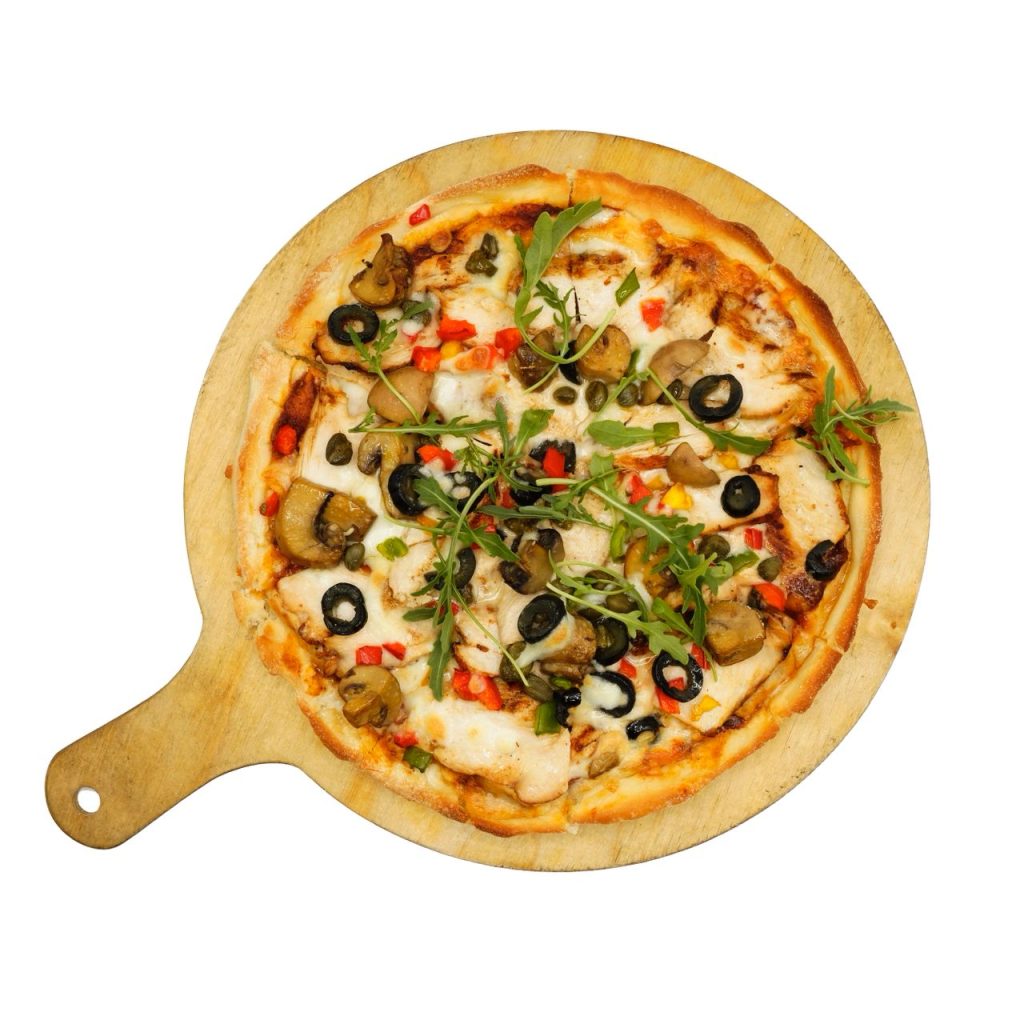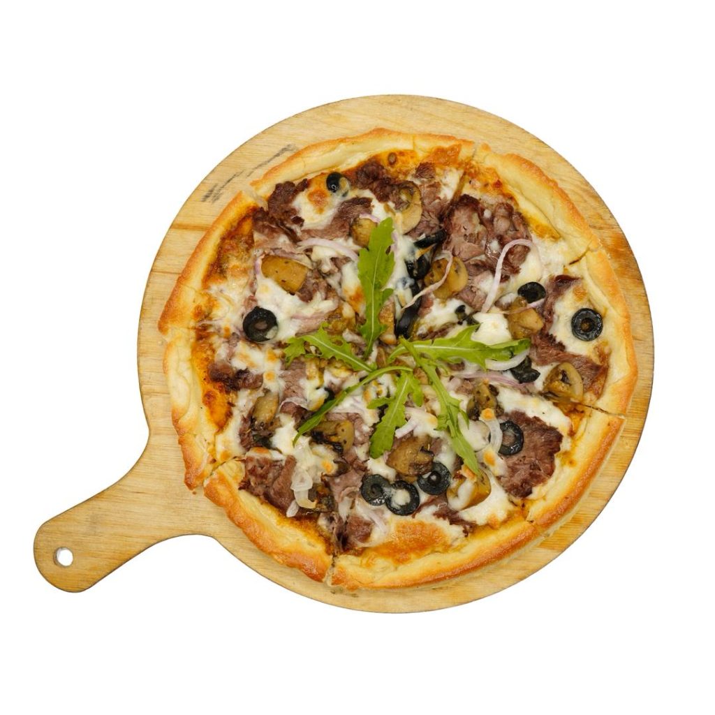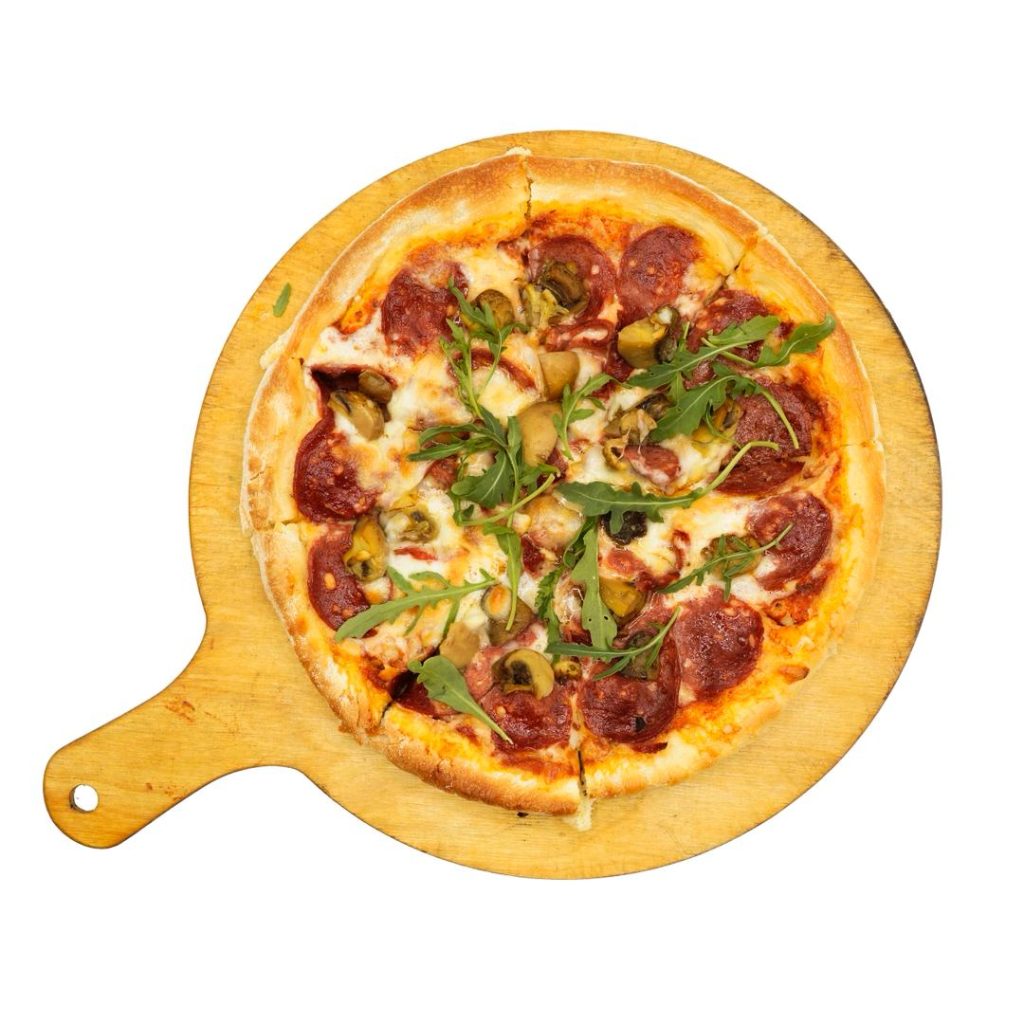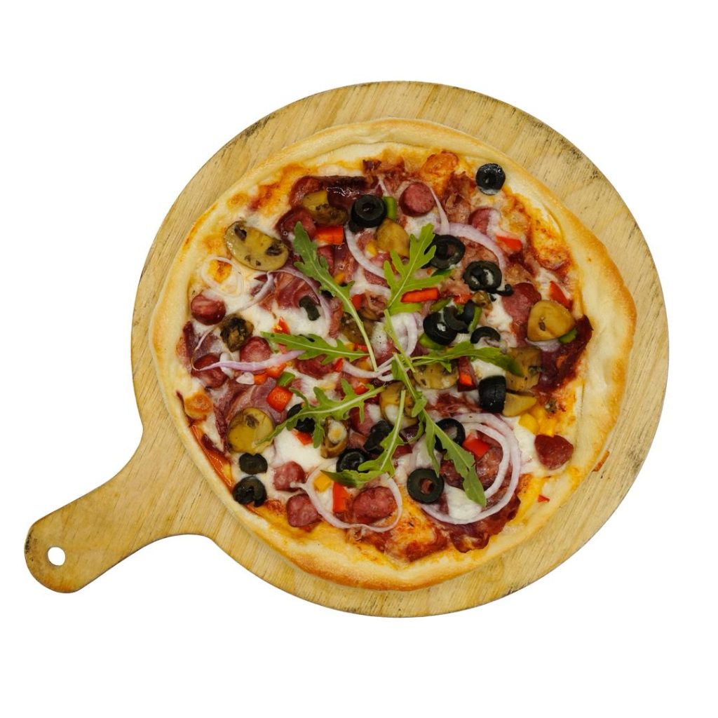 سس قارچ-بیکن-چوریتسو-قارچ-فلفل سبز-زیتون سیاه-پیاز